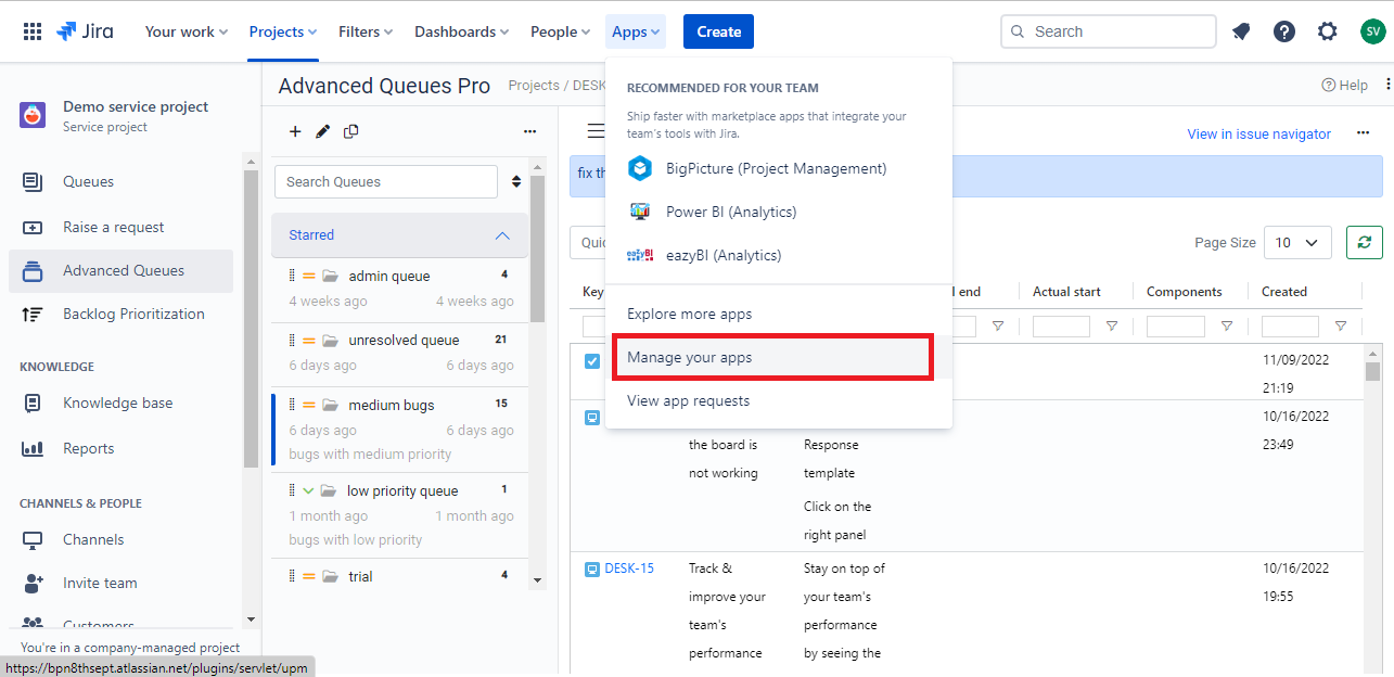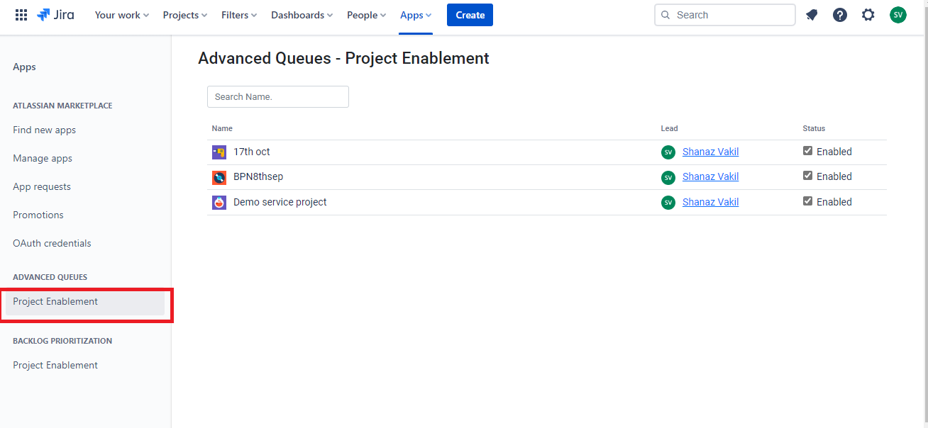 Select Project Enablement under Advanced Queues.You can now choose which project you want to enable Advanced Queues for.