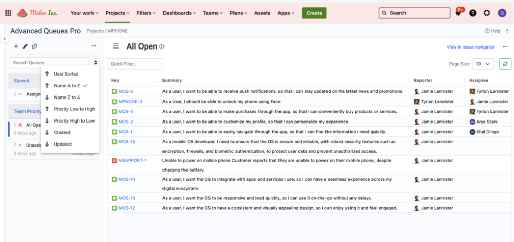 You have several options to sort the queues within the queue list. To do so, simply click on the sorting icon located next to the search bar. When you select "User Sorted," you can easily rearrange the queues by using the drag-and-drop function, offering a flexible and intuitive way to customize the queue order to your preferences.
