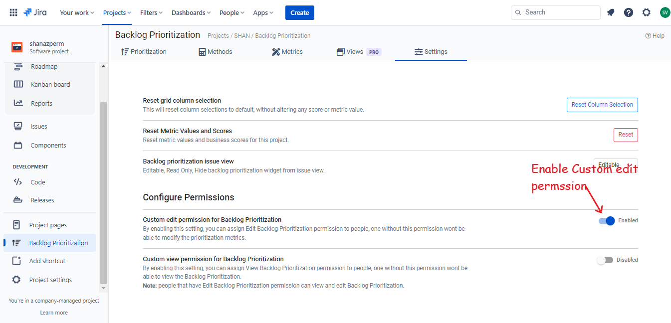 Step 1:Enable the Custom View Permission for Backlog Prioritization.
