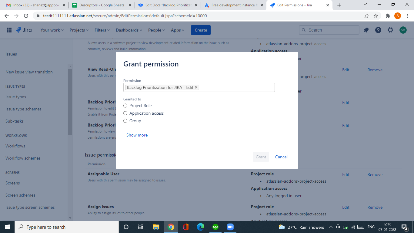 Scenario1: If you want to give a user/group/project role permissions to edit the backlog prioritization grid then you will need to follow the steps below: