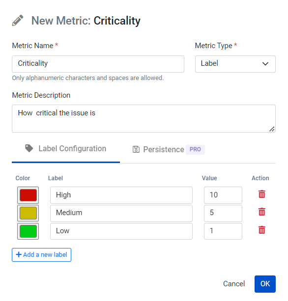 Define Metric Properties: As you embark on creating your distinctive metric, furnish it with a name that succinctly encapsulates its purpose. You also have the opportunity to define its type, offering you flexibility in aligning it with your prioritization objectives. Furthermore, providing a clear and concise description allows others to comprehend the metric's significance effortlessly.