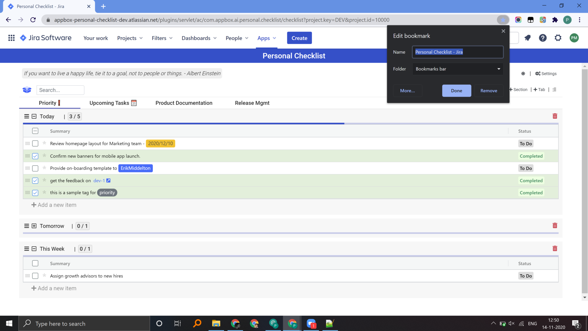 Bookmarking your personal checklist is a simple way to keep your tasks in focus and readily available whenever you need them.