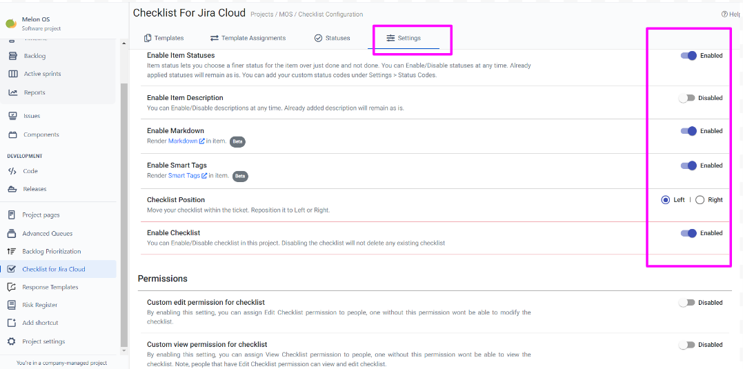 Enable Checklist: You have the option to enable or disable the checklist for this project. Disabling the checklist will not delete any existing checklists.