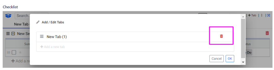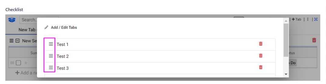 Tabs offer a structured way to organize your checklist, allowing you to categorize items by topics, urgency, progress, or any other criteria that suit your needs. You have the flexibility to add, delete, rename, and reorder tabs as required.