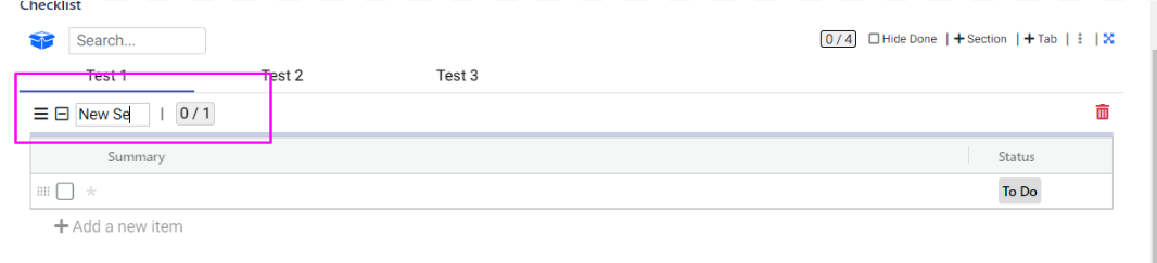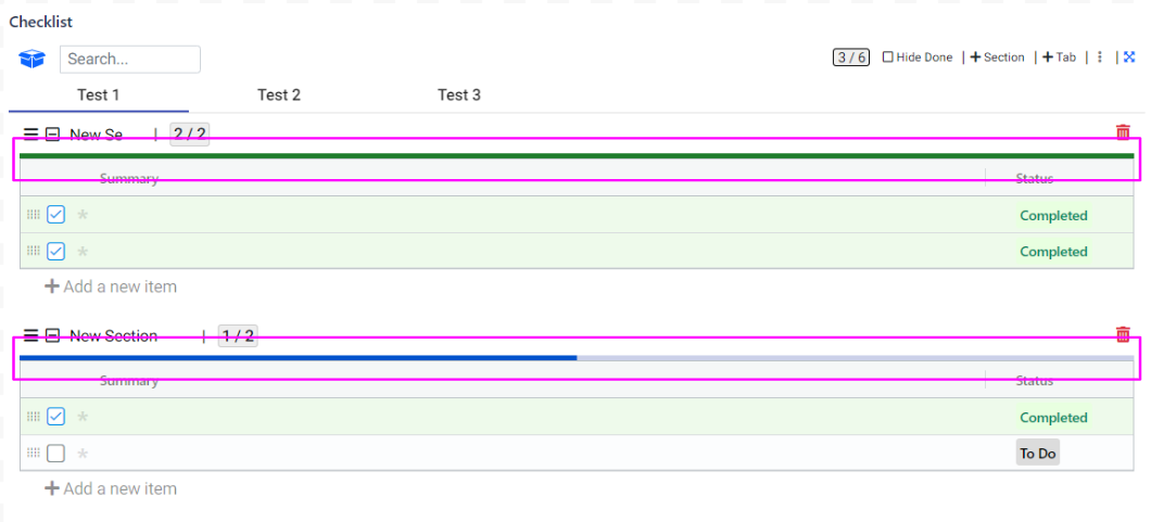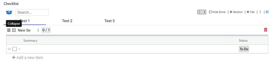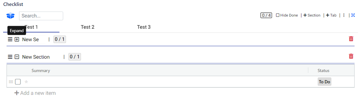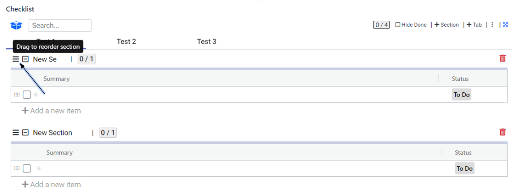 Within a tab, you have the option to further organize your checklist items by grouping them into sections. This allows for a more structured and categorized approach to managing your tasks.