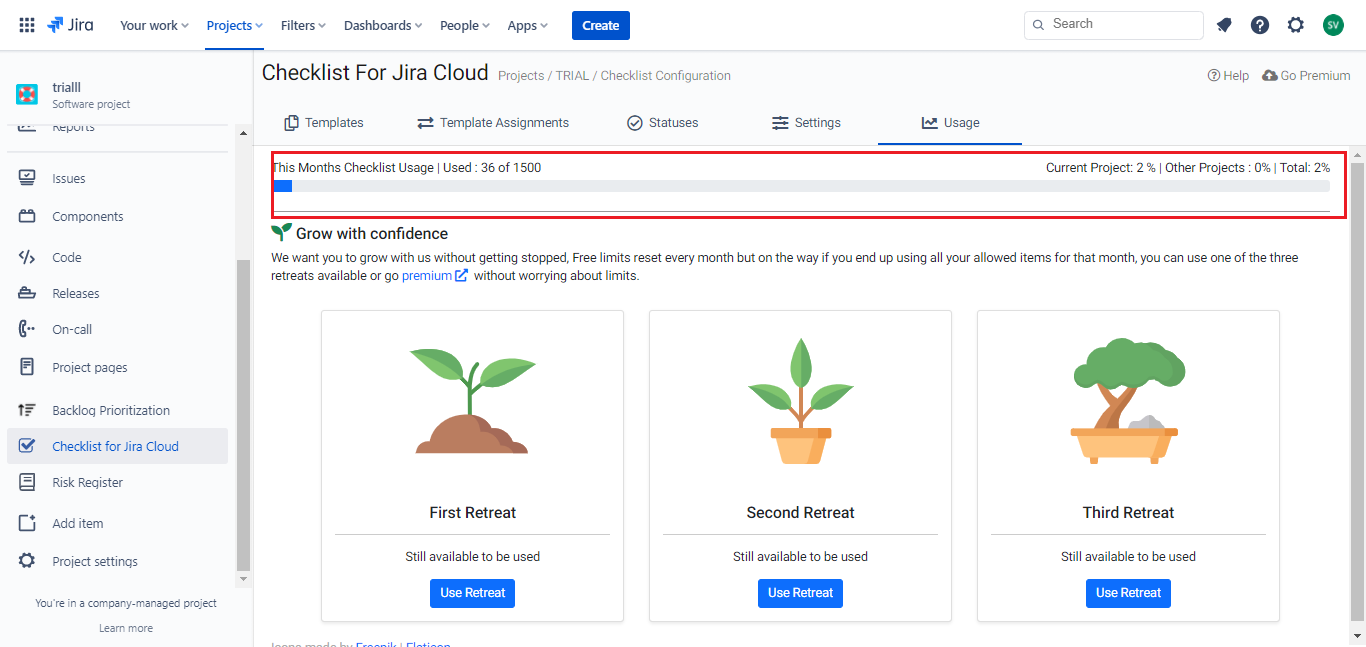The user can view their checklist usage from checklist for JIRA>usage page.