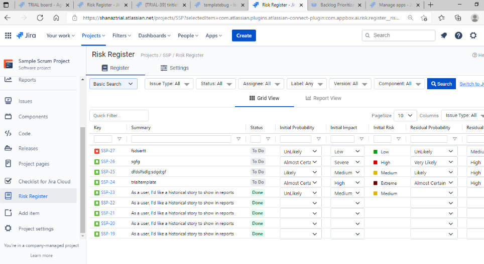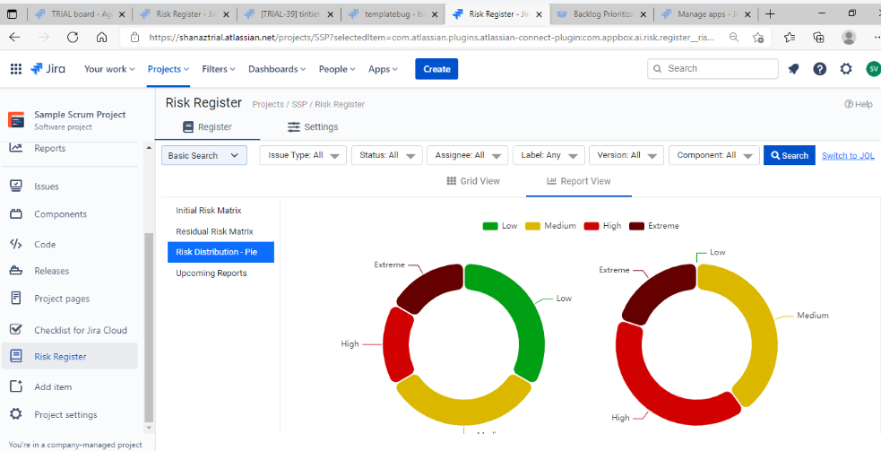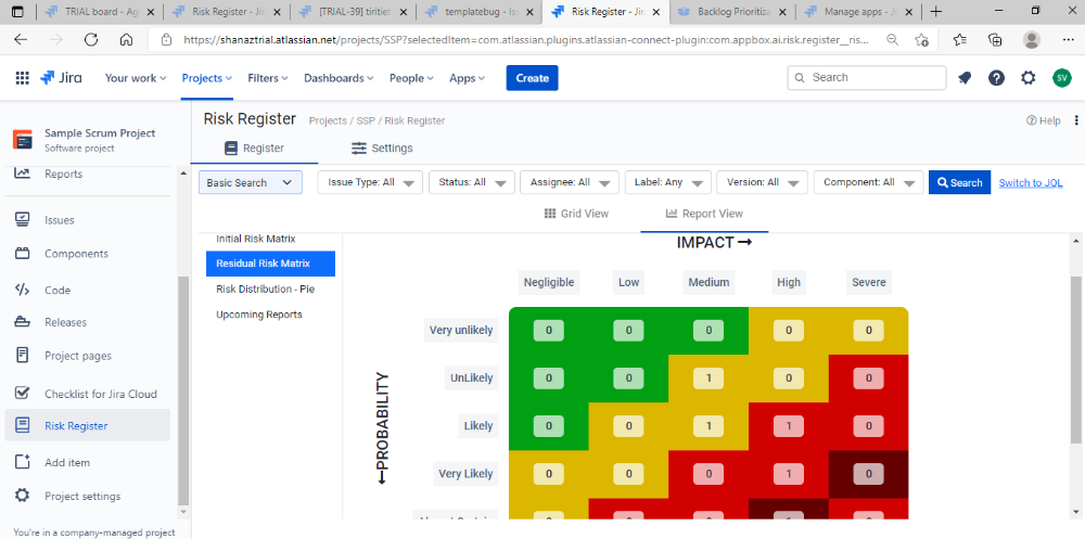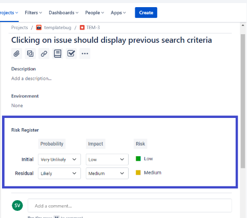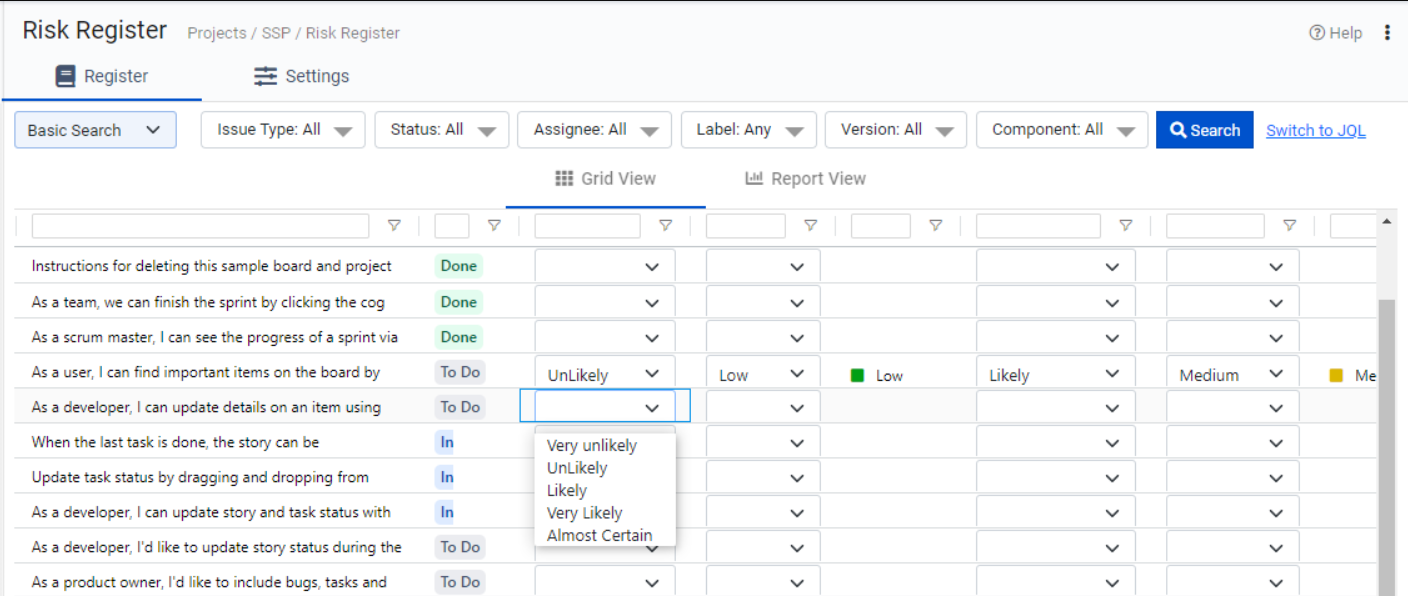 Advanced Search Capabilities: Easily search and filter risk severity, impact, and probability using a variety of search options, including filters and JQL queries, ensuring you can pinpoint and address potential risks effectively.
