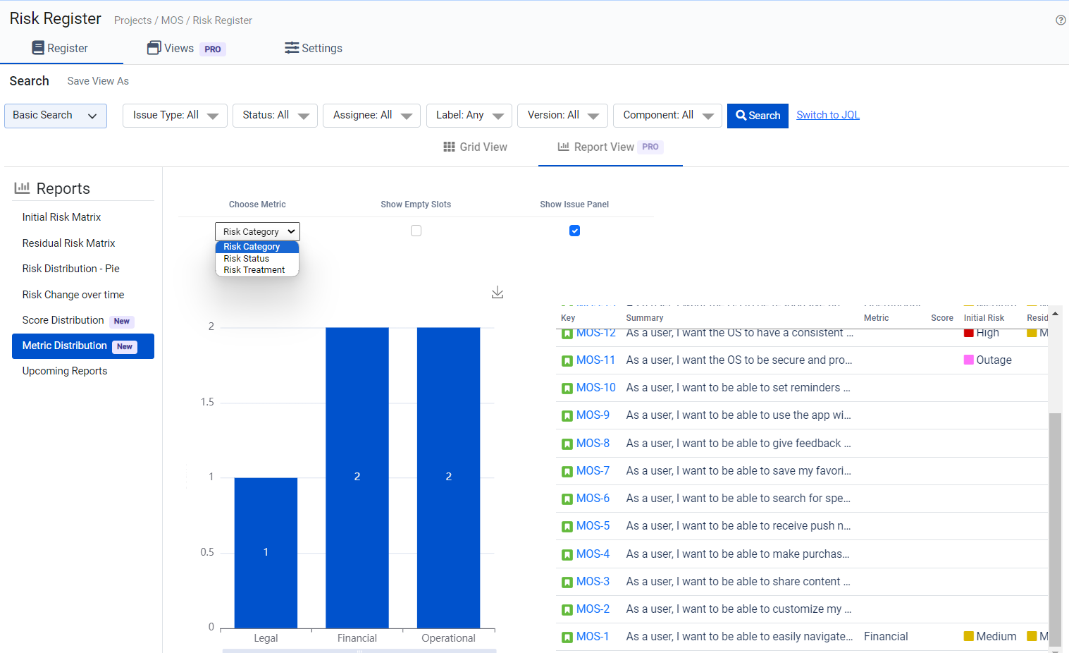 Data Insights: By examining this report, users can gain insights into how specific metrics are distributed across different risk categories or issues. This aids in risk assessment, prioritization, and decision-making.